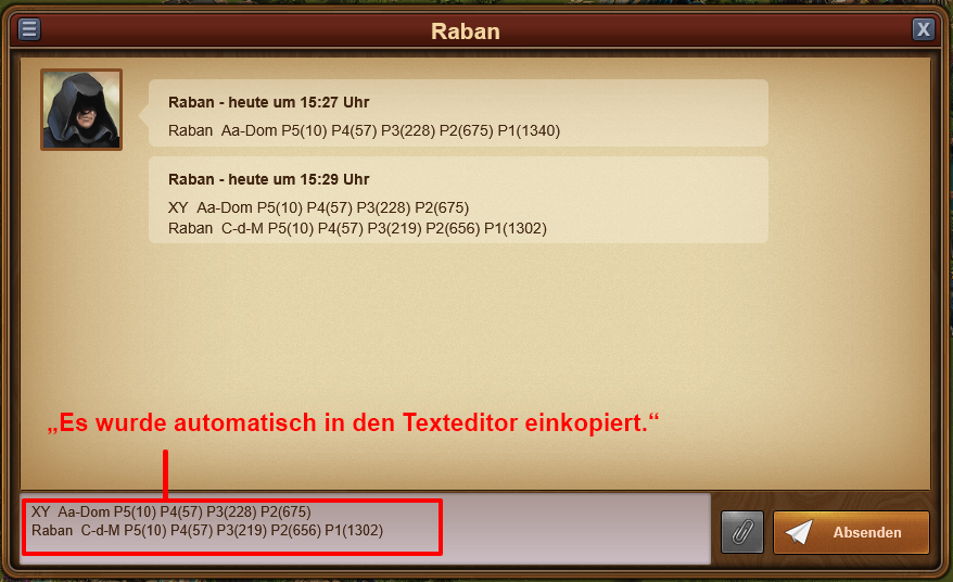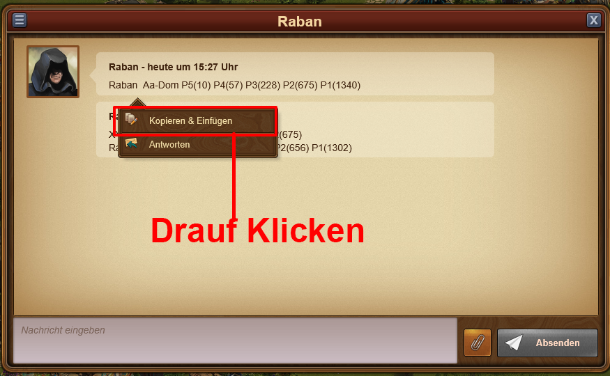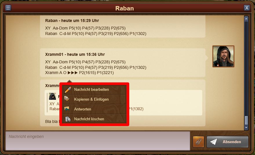 Kopieren, Antwort, Bearbeitungsfunktionen im Gilden-Chat