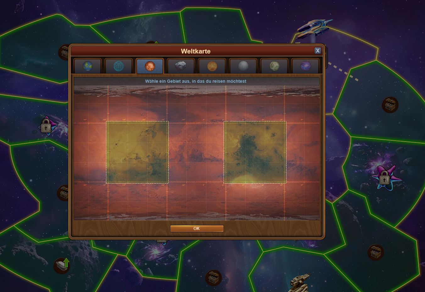 Bevor du dieses Zeitalter verlässt, musst du die Karte der Kontinente (KdK) 🌍 vollständig durchgespielt haben und dir einen Vorrat an Mars-Erz ⛏️ sichern.